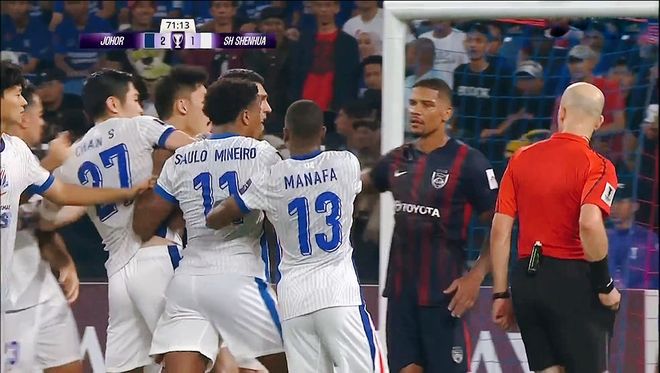 第70分钟,柔佛新山禁区直接踢倒了徐皓阳,裁判经过视频回放之后,决定吹罚点球,米内罗一蹴而就,2:1!申花扳回一城。虽然体能下降得很厉害,但是上海申花仍旧在进攻端不遗余力的全力进攻。